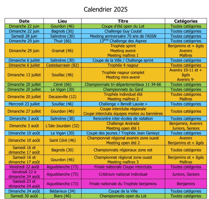 Compétitions estivales